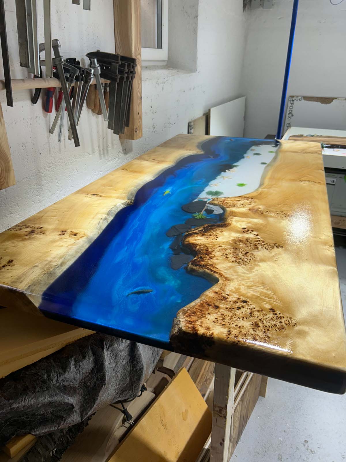 Entdecken Sie in unserer Galerie handgefertigte Epoxidharz-Unikate aus Tirol. Von kunstvollen Tischen über individuelle Möbel bis hin zu dekorativen Accessoires – hier zeigen wir die Vielfalt unserer Designs, die Holz, Stein und Epoxidharz auf einzigartige Weise verbinden.